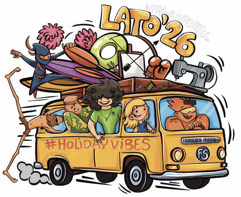 Nowe gry tematyczne dopasowane do wieku campowej grupy, nowe wyzwania, zadania, odznaki, motywy, zajawki, nowe przyjaźnie, nowe wspomnienia, nowa kolekcja lato 2026 i NOWA ENERGIA niosąca nas przez kolejne wakacje z Falą Sportu!