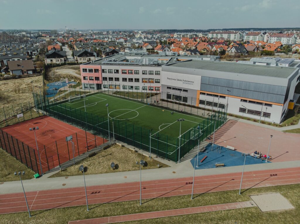 Szkoła z nowoczesną, dużą salą gimnastyczną i salą dydaktyczną tuż obok, czyste i zadbane pomieszczenia, boisko orlik i boisko wielofunkcyjne wraz z placem zabaw.