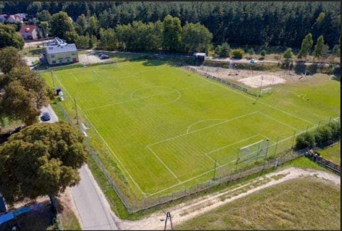 Kompleks sportowy z murowanym budynkiem klubu i straży, wyposażony w czyste toalety, salki warsztatowe, szatnie i salkę gimnastyczną. Pełnowymiarowe, naturalne boisko, boisko treningowe, piaszczyste boisko do siatkówki, miejsce na ognisko oraz wiata w otoczeniu lasu i jeziora.