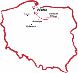 Ośrodek „ROMA” położony jest w miejscowości Łapino na Kaszubach ok. 20km od Gdańska. Ośrodek jest ogrodzony, monitorowany, z własną plażą nad jeziorem Łapińskim. Uczestnicy campów będą zakwaterowani w przestronnych, zadbanych 4-8 osobowych domkach z pełnym węzłem sanitarnym. Po dwuletniej przerwie, wracamy do znanego już nam ośrodka w Łapinie, a do naszej dyspozycji mamy wyodrębnioną część terenu tylko dla naszych grup, plaże i dużą halę namiotową. Ośrodek posiada murowany budynek gdzie znajduje się recepcja, stołówka i pokoje.